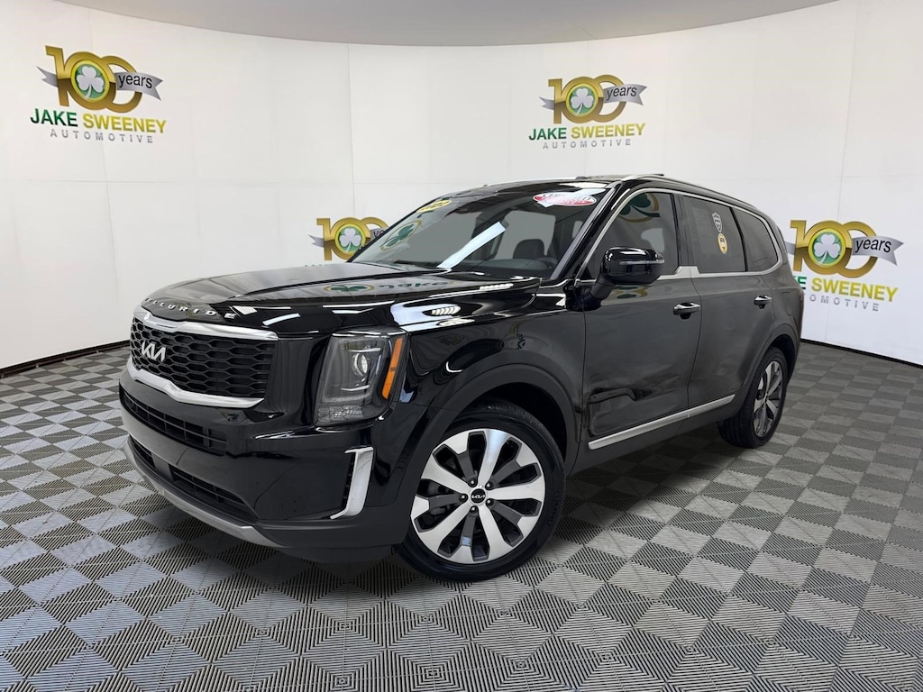 Our 2022 Kia Telluride S AWD in Ebony Black is here to tackle all of your adventures! Powered by a 3.8 Liter V6 supplying 291hp matched to an 8 Speed Automatic transmission for the power you need to go where you want. This All Wheel Drive SUV also has impressively sporty handling with high-performance dampers, and it returns nearly 24mpg on the highway. Showing off its athletic side, our Telluride is ready to roll with LED lighting, 20-inch alloy wheels, a silver-painted skid plate, a power sunroof, dual-exhaust outlets, and satin chrome accents.