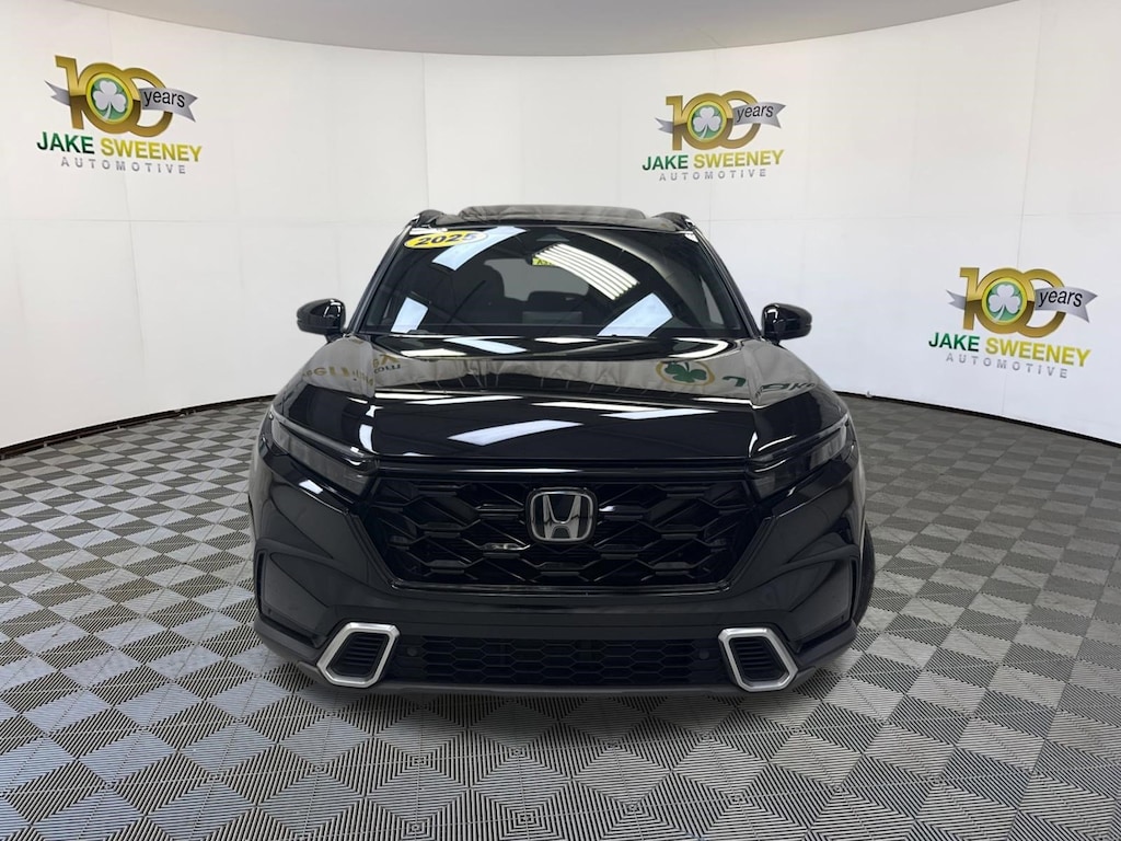 Our 2025 Honda CR-V Hybrid Sport Touring AWD can help you rule the road and take to the trail in Crystal Black Pearl! Motivated by a 2.0 Liter Hybrid 4 Cylinder and 2 Electric Motors delivering a combined 204hp to a CVT for confidence on the pavement or off. This All Wheel Drive SUV also shows off hybrid efficiency by scoring nearly 40mpg in the city and nearly 34mpg on the highway. Enjoy strong and sophisticated style with our Honda's LED lighting, power sunroof, hands-free liftgate, 19-inch gloss-black wheels, matching roof rails, and dual chrome exhaust finishers.