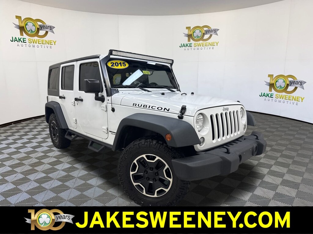 Introducing our No Accidents Reported 2015 Jeep Wrangler Unlimited Rubicon 4WD presented in a Bright White Clearcoat paint scheme. Motivated by a 3.6 Liter Pentastar V6 that produces 285hp and almost as much torque, combined with the rock-solid Dana front and rear axles, this 6 Speed Manual transmission will allow you to maintain civility or allow you to carve your path wherever you see fit; thanks to the locking differentials, Rock-Trac HD transfer case, and gas-charged shocks. This Four Wheel Drive team helps our Jeep achieve nearly 21mpg on the highway. The Rubicon goes a little beyond basic by offering an LED light bar, step bars, bold 17-inch wheels with a polished face and painted mineral gray inner, and large tires and real ground clearance, which are increasingly handy for the committed urbanite.