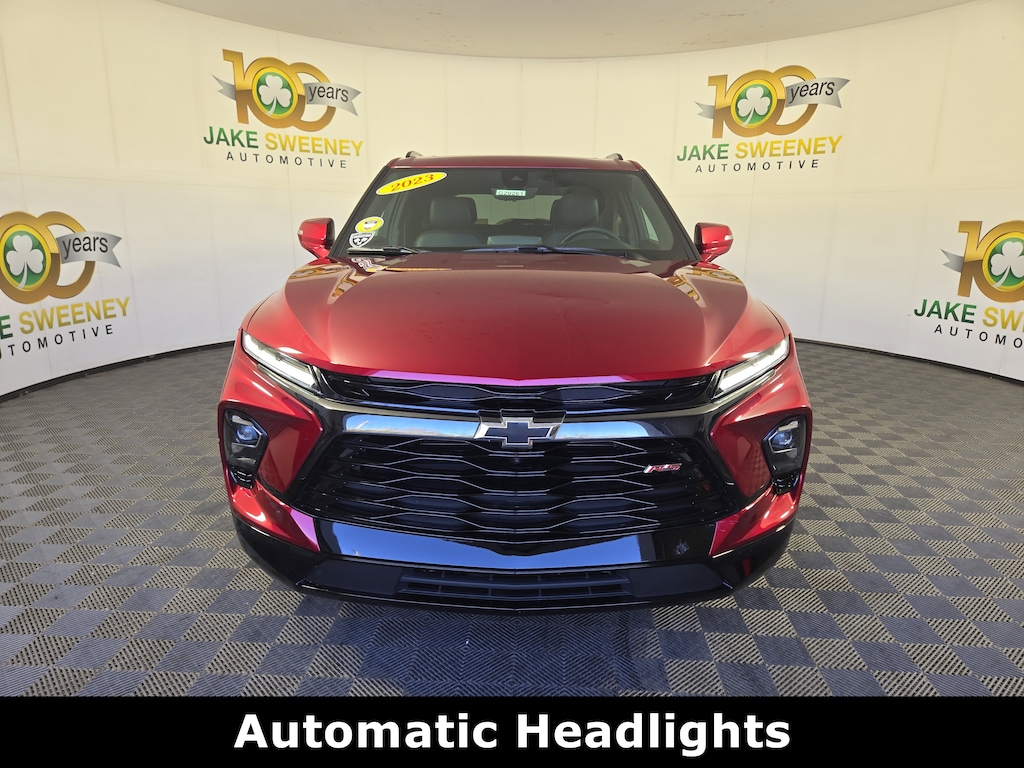 Jake Sweeney Is Here to Help! If you are in need of a new or used vehicle, we are offering you the ability to shop online and have your vehicle delivered to your home. Radiant Red Tintcoat 2023 Chevrolet Blazer RS AWD 9-Speed Automatic with Overdrive 3.6L V6 SIDI SUNROOF, AWD, Adaptive Cruise Control, Driver Confidence II Package, Enhanced Automatic Emergency Braking, Enhanced Convenience Package, HD Surround Vision, Heated Rear Outboard Seating Positions, Heated Steering Wheel, Memory Settings For Driver Seat & Exterior Mirrors, Power Tilt & Telescoping Steering Column, Preferred Equipment Group 1RS, Rear Camera Mirror, Rear Camera Mirror Washer, Rear Park Assist w/Audible Warning, Safety Alert Seat, Ventilated Driver & Front Passenger Seats, Wheels: 21" High Gloss Black w/Machined Face.